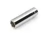 Use a 13 mm socket wrench with an extension to remove the nut holding the fan in place. Remove all hardware from the threaded shaft.