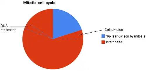 The cell cycle is the period between one cell division and the next - it's three phases are interphase, nuclear division and cell division. During interphase, the cell regrows to its normal size following cell division and then carries on its normal processes, whatever its task may be. When a signal is received to divide, the DNA replicates so that each chromosome consists of two identical chromatids. Nuclear division then follows, and the whole cell then divides. In animals cells, cell division also involves construction of cytoplasm - known as cytokinesis - between the two new nuclei.
