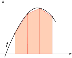 The area under the curve between the bounds and is the sum of the trapeziums' areas: .