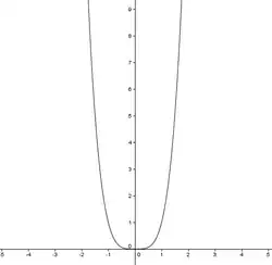 As we can see by looking to the right graphs of an even power are a "U" shaped curve. with greater powers having a longer "flat" section between 1 and -1
