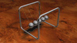 3. A totally elastic collision occurs between two balls of equal mass. One of the balls is stationary. What happens?