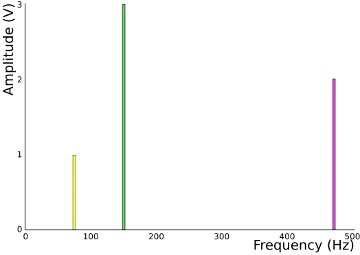 The fundamental frequency is the lowest frequency that makes up a signal. In the above example, the fundamental frequency is 80 Hz. It is always the frequency farthest to the left of a frequency spectrum, ignoring noise. Other frequencies are known as overtones, or harmonics.