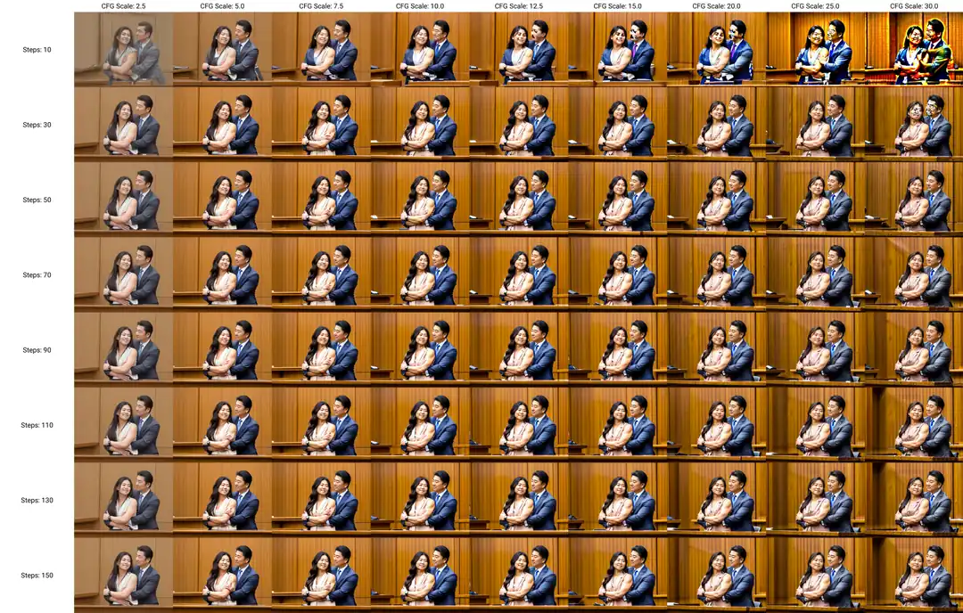 It is note worthy to look that steps that are too low and with high CFG values will almost caused the images to become distorted.