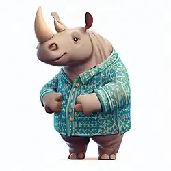 The prompt used is Anthropomorphic rhinoceros standing on two feet, wearing shirt with <<Pattern's Name>> pattern