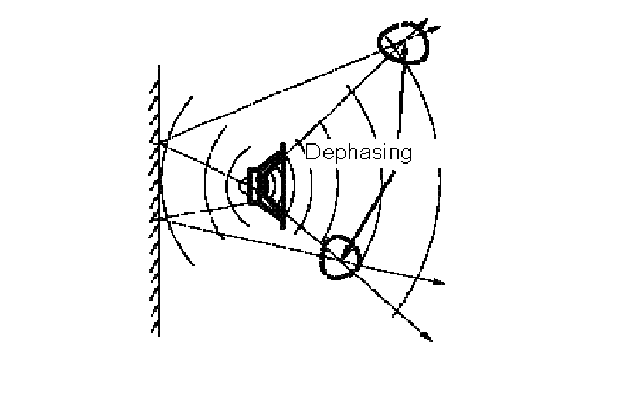 The loudspeaker emits two waves : a front wave and a back wave. With a reflection on a wall, the back wave can be added with the front wave and produces destructive interferences. As a result, the sound pressure level in the room is not uniform. At certain positions, the interaction is additive, and the sound pressure level is higher. On the contrary, certain positions offer destructive interaction between the waves and the sound pressure level is lower.