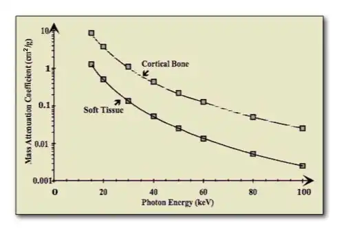 Dual-energy imaging is based on exploiting the difference in the attenuation of tissue and bone at different X- ray energies – see the following figure: