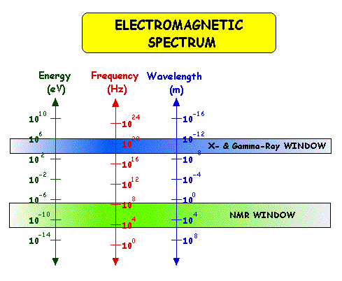 You should remember from your high school physics that electromagnetic radiation is the biggest physical phenomenon we have so far discovered. The radiation can be characterised in terms of its frequency, its wavelength and its energy. Thinking about it in terms of the energy of the radiation we have very low energy electromagnetic radiation called radio waves, infra-red radiation at a slightly higher energy, visible light at a higher energy still, then ultra-violet radiation and the higher energy forms of this radiation are called X-rays and gamma-rays. You should also remember that these radiations form what is called the Electromagnetic Spectrum.