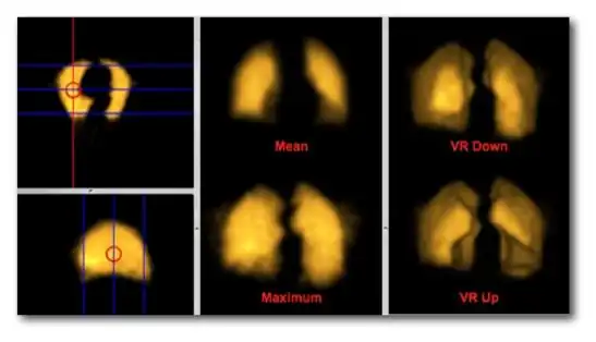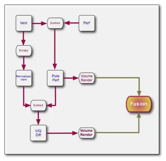 We'll conclude this chapter by considering an application of 3D visualization which integrates many of the image processing techniques we've described in this wikibook. We'll use the two SPECT scans, from a patient's lung-ventilation (V) and lung-perfusion (Q) studies, in an attempt to visualize any mismatch(es) characteristic of pulmonary embolism (PE). The application we'll consider is called subFusion Processing because it involves both image subtraction and image fusion techniques.