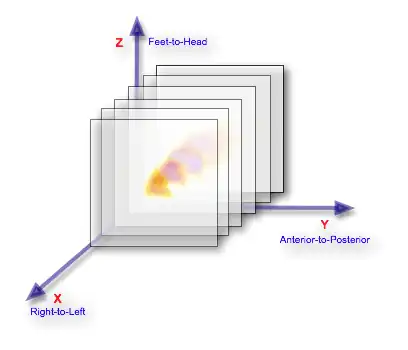 - Here the image stack is rotated so that the z-axis becomes the vertical and a stack of images is reconstructed using parallel planes of voxels arranged from the patient's anterior to posterior surface, as illustrated in the following figure: