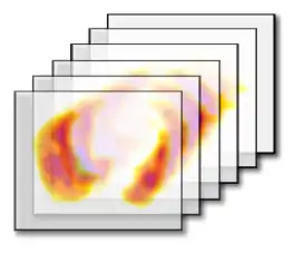 Notice that the figure illustrates each image as a thin slice when the data represents in reality a slice wide enough to fill the gap between it and the next slice, so that the image data can be considered to be a matrix of volume elements – called voxels for short.