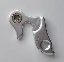 • The hanger is the thin mounting plate for the derailleur. In steel bikes it is often just a part of the frame, but aluminum frames are usually protected against impact damage with a separate bendable hanger.