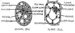 Labeled drawings of Plant and Animal cells seen under a microscope