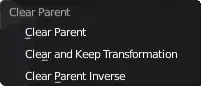 • Clear Parent Inverse: this doesn’t actually clear the parent/child relationship, but it sets the transformation of the child relative to the parent to the same as the transformation the child had on its own before it was parented.