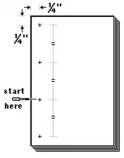 1. Using a ruler, draw a line from the top to the bottom of the front cover, about 14 in (6.4 mm) from the spine. Make two marks on this line, one 14 in (6.4 mm) down from the top of the book, the other 14 in (6.4 mm) up from the bottom. Now divide the distance between these marks into thirds and mark the two middle points.