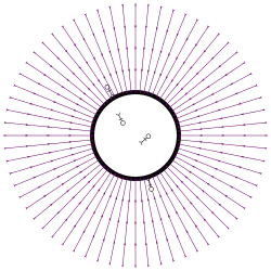 Choose infinity as the origin point and let . Given an arbitrary point , choose a direction quantified by unit length vector . The path travels backwards along a ray that starts at and points in the direction given by . . Since this integral does not depend on the direction , the average over all directions is: