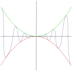 These next two can be tricky to visualize. In this one, we mean that a graph continually rises above and falls below a horizontal line. In fact, it does this infinitely often as you approach a certain -value. This often means that there is no limit, as the graph never approaches a particular value. However, if the height (and depth) of each oscillation diminishes as the graph approaches the -value, so that the oscillations get arbitrarily smaller, then there might actually be a limit.