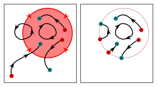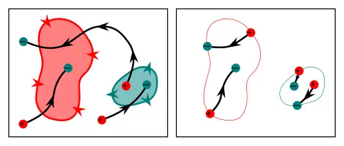The total endpoints of are: . In essence, the endpoints of are the endpoints of that are contained in , plus the points at which paths from enter or exit volumes from . This is depicted in the images on the right.
