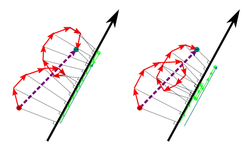 Given a simple path that starts at point and ends at point , the total displacement generated by is . This displacement is solely dependent on the endpoints as indicated by the top image to the right.