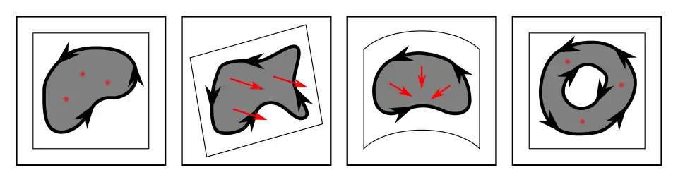 • Given a multi-surface denoted by vector field , and a multi-volume denoted by scalar field , then the counter-clockwise boundary of the intersection is: .
