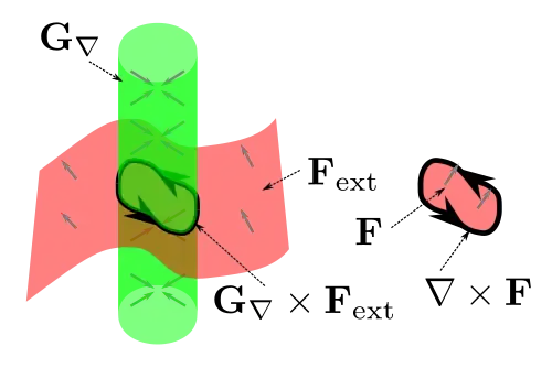In summary, a multi-surface is denoted by a vector field that quantifies the rate of gain at each point. To describe the rate-of-gain, imagine that passing through a surface in the preferred direction gives "energy". The rate of gain is a vector that points in the direction that yields the greatest rate of energy increase per unit length, and has a length equal to the maximum rate of energy increase per unit length. Any vector field that quantifies a rate of gain at each point (such as a force field) is best interpreted as a multi-surface.