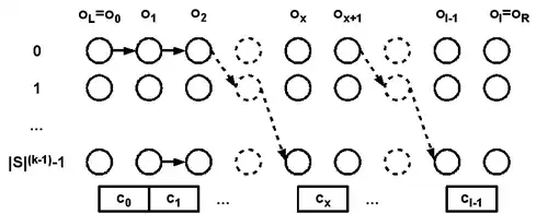 for ( o=0; o<|S|^(k-1); o++ ) # for all overlaps