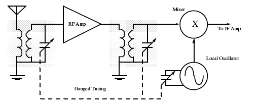 The RF amplifier boosts the RF signal into the mixer. It has broad tuning and amplifies not just one RF station, but many of them simultaneously. It also amplifies any input noise and even contributes some of its own.