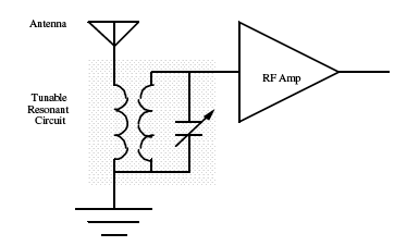 By adjusting the center frequency of the tuned circuit, all other input signals can be excluded.