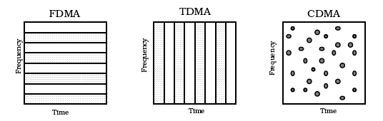 - TDMA - (Time division multiple access) three conversation paths are time division multiplexed in 6.7 mSec time slots on a single carrier.