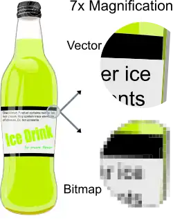 In two dimensional graphics, the area of Graphic design, the main modes of transporting images and shapes are vectors and pixels. Think of vectors like outlines. Imagine a shape, such as that of a bottle. If you were to create an icon that looked like a simplified, one color representation of the shape of a bottle, you would achieve this by drawing the outline, the outer edge of the bottle, as seen from where you look at it. To draw it with vectors, you create points around that edge. Just drawing points and lines will create a jagged form, that looks a bit like a cut-out made from paper with a scissor. To create curved lines without creating an enormous amount of points and lines, "off-curve points" are used, they act to create a tension on the line, pulling it in a direction for a part of the line's trajectory. The basic points that always sit on the line are, in contrast, called "on-curve points". The most common vector format is the cubic bezier-curve, which can be recognised as two off-curve points that come out of every on-curve point. "Cubic" describes the number of points used to make one curved line, a cube has four corners.