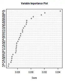 varplot : plot of variables ordered by the variable importance measure (based on improvement).