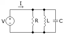 The simple mechanical oscillator drawn above would become a parallel RLC Circuit. The potential across each element is the same because they are each operating at the same velocity. This is often the more intuitive of the two analogy methods to use, because you can visualize force "flowing" like a flux through your system. The ideal voltage generator in this drawing would correspond to an ideal velocity generator.