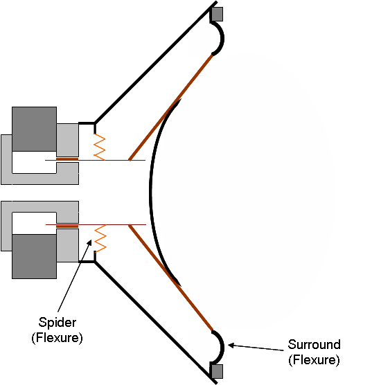 In practice, the stiffness of the spring , also called the spring constant, is usually expressed as , or the mechanical compliance of the spring. Therefore, the spring is very stiff if is large is small. Similarly, the spring is very loose or “bouncy” if is small is large. Noting that force and velocity are analogous to voltage and current, respectively, in electrical systems, it turns out that the characteristics of a spring are analogous to the characteristics of a capacitor in relation to, and, so we can model the “reactiveness” of a spring similar to the reactance of a capacitor if we let as shown in Fig. 2 below.