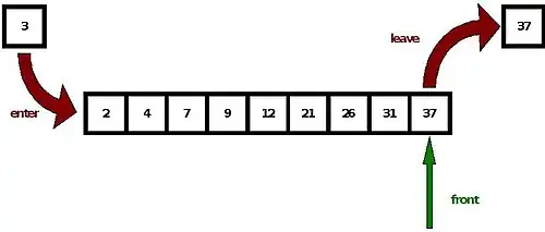 A line of people might be represented by a queue: people add themselves to the rear of the line, and are removed from the front. The first person to stand in line is the first person to be served.