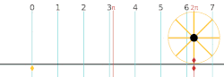 - unrolling the circumference of a unit circle o see how long it is[6]