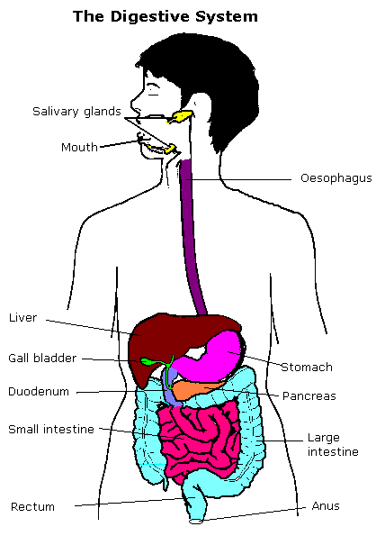 It is useful to know that the small intestine consists of the duodenum, jejunum and ileum and the large intestine consists of the caecum, colon and rectum in that order. The appendix is a small cul-de-sac at the base of the caecum. Only the terms in italics are needed by most GCSE boards.