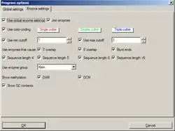 Here the gloal enzyme options can be selected. These can be overridden for an individual sequence in the sequence editor, where there is a tab identical to this one.