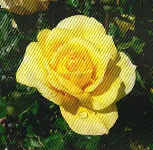 On the right, you see the picture of a flower with a coherent noise pattern on it. One might get a picture like this using a scanner. It is evident that the disturbance we want to remove is all over the picture, so it would be very difficult to remove with traditional means, such as blurring, sharpening or cloning. It is regular pattern, so it should be easy to remove in the frequency domain. Unfortunately, removing the coherent noise will cause the removal of some information that is contained in the same frequencies as the pattern. It is very difficult to preserve that information, and it will not be considered in this tutorial.