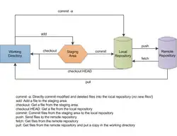 Basically, git consists of three major parts that are important when using it. Since git is a distributed system, one has a local repository which is exactly what it sounds like. This is where all changes are recorded. All your changes are first committed to your local repository, and must then explicitly pushed to a remote repository. The files with your code lie in a working directory. Between your working directory and the local repository is a staging area that gathers all changes, before they are committed to the local repository. It's like a loading bay, where packets are stored before they are loaded into an airplane.