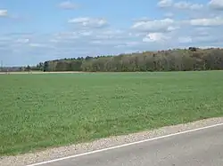 In Wisconsin, the Niagara Escarpment is called “The Ledge” that extends about 250 miles through the eastern part of the state in a Northeastern or Southwestern direction. The Ledge stretches from Waukesha county up through Dodge, Fond du Lac, Calumet, Brown, and Door county. From a few outcrops in Waukesha county then re-emerging from glacial sediment in Dodge county to steep rock ledges in High Cliff State park in Calumet county and to its highest exposures in Wisconsin rising above the west side bay of Green Bay on the Door county peninsula.[1]