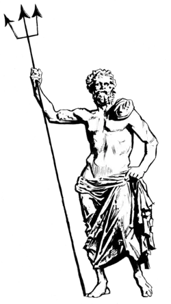 Poseidon (In Greek: Ποσειδῶν, known as Neptune to the Romans) was considered as the god of the ocean. Born of Chronos and Rhea, he had Zeus and Pluto (Hades) for brothers. Poseidon also had three sisters: Hestia, Hera, and Demeter. When Zeus overthrew their father, and the three brothers divided the earth among them, Poseidon became the god of the sea and earthquakes and thunder.