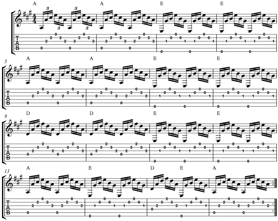 In a more classical approach, arpeggios must follow a distinct pattern of notes depending on the chord/scale we're playing. This is similar to playing chords note-by-note on a piano (not on a guitar).