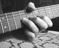Many aspiring guitarists cannot bend properly. The sound of a bend is more important than how it is actually executed or how it looks, but a bad bending technique usually leads to a bad sound. Your favorite guitarist might bend using just his or her fingertips and you might be inclined to copy this — don't! Your hands can sound every bit as good as your hero's without copying his or her technique. There are two keys to bending properly: proper thumb positioning, and bending with the proper muscles. Do not keep your thumb behind the neck, where it usually is, but bring it up perpendicular to the neck (a position that is normally incorrect, but not in the case of bending). Keep the fingers firm. Do not bend your fingers, but push or pull with your forearm. You will hardly see your forearm move, possibly just see a couple of muscles flex. It will feel awkward at first, but if you can bend with the thumb in the proper position and without bending the fingers, you are probably doing it correctly.