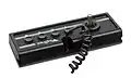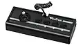 The Vectrex was the first home console to use an analog controller.[15] The joystick was self centering.[16] An optional second controller could be used.[16] An optional light pen and 3D Glasses were released for the system.[2][19][20]