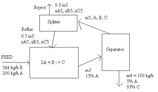 Since we don't know or , we cannot use the mass balance on B or C for the separator, so lets move on. Let's now turn to the reactor: