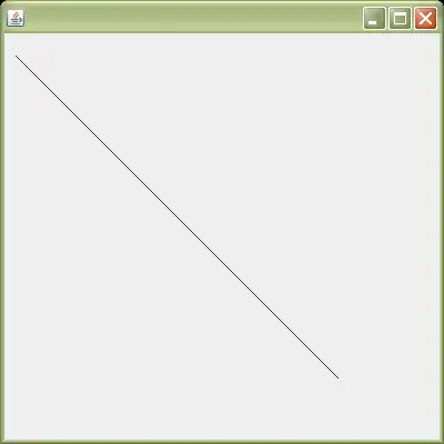 In the above example, a simple method is used to define precisely where to place the line on the Cartesian scale of the canvas. The drawLine(int,int,int,int) asks you to put four arguments, appearing in order, the x1 coordinate, the y1 coordinate, the x2 coordinate and the y2 coordinate. Running the program will show a simple black line diagonally going across the canvas.
