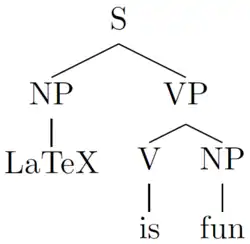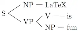\Tree [.S [.NP LaTeX ] [.VP [.V is ] [.NP fun ] ] ]