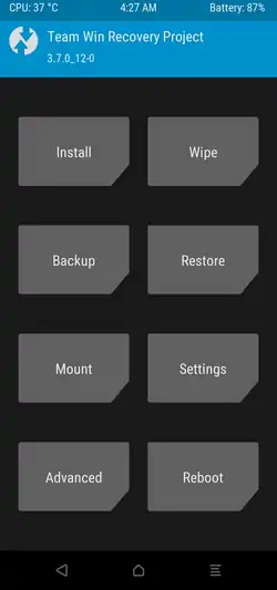 Turn off your device and use the key combination Power + Volume Up to reboot into custom recovery.