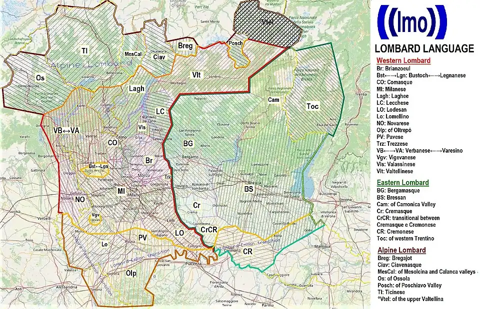 - Traditionally, Lombard is divided into two main variants: Western Lombard and Eastern Lombard. The border between the two variants is placed on the Adda river.
