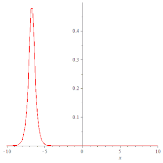 with(plots); animate(subs(k = .5, f), x = -30 .. 30, t = -10 .. 10, numpoints = 200, frames = 50, color = red, thickness = 3);