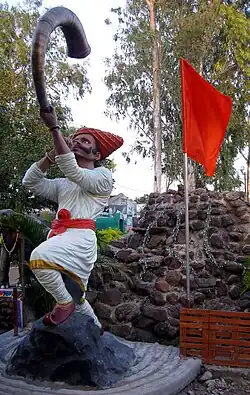 तुतारी = tutAri; A traditional (musical) instrument in hands of a soldiar.